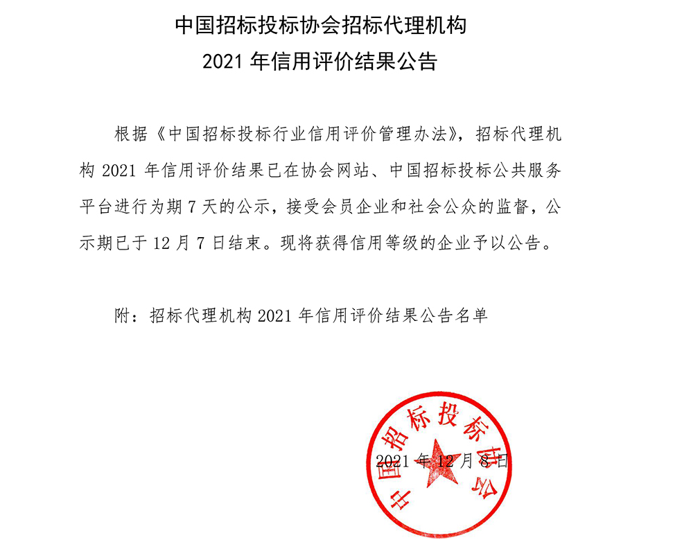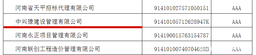 近日,中國招標投標協(xié)會發(fā)布的招標代理機構(gòu)2021年信用評價結(jié)果公告中,中興豫建設管理有限公司被評為AAA級工程招標代理機構(gòu)。
